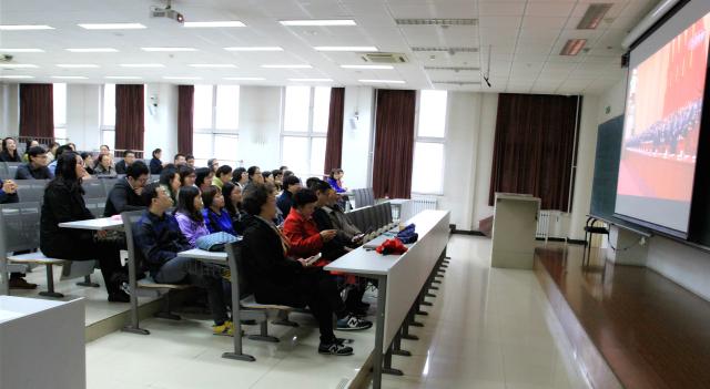 党的十九大是我党在全面建成小康社会决胜阶段、中国特色社会主义进入新时代的一次非常重要的大会,在观看直播现场,人事处全体党员聚精会神认真聆听了习近平总书记的精彩报告。