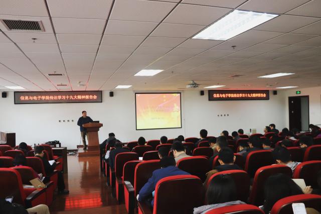 编辑:曹安琪 审核:薛正辉 阅读次数:日前,中国共产党第十九次全国代表大会胜利闭幕,ob真人竞猜师生掀起了学习宣传贯彻党的十九大精神的热潮。2017年10月31日下午,信息与电子学院传达学习十九大精神报告会在信息科学实验楼202报告厅举行。信息与电子学院党委组织学院全体教职工党员与部分学生党员代表共同学习领会党的十九大精神。