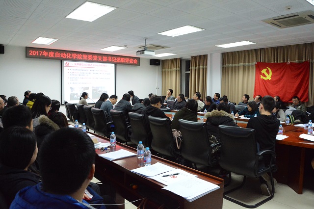 编辑:贺小琴 审核:金军 阅读次数:为深入贯彻落实党的十九大精神和全国高校思想政治工作会议精神,推进“两学一做”学习教育常态化、制度化,进一步加强党的基层组织建设,不断提升党支部的凝聚力和战斗力,按照学院学院党委安排,把基层党支部书记述职作为一项日常工作,并把其作为推进推荐“双一流”建设和落实立德树人根本任务具体的抓手和举措。2017年12月26日,自动化学院党委在研究生楼111会议室召开党支部书记抓党建现场述职评议大会(第三批次)。