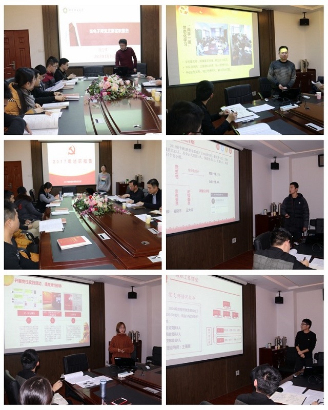 围绕学习宣传贯彻党的十九大精神、党支部规范化建设、“两学一做”学习教育“一支部一活动”、发展党员、引领服务师生发展、当前存在主要的问题及原因、下一步工作改进措施等内容,学院全部32个党支部书记提交了书面述职报告。光电子研究所党支部书记冯立辉、博士光工1班党支部书记陈粟等14名党支部书记进行了现场述职。