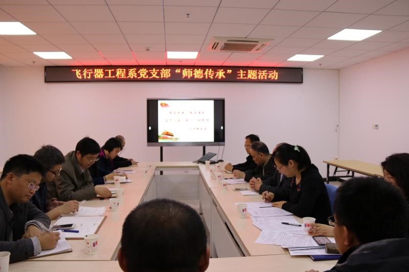 为贯彻落实习近平总书记在十九大报告中提出的“加强师德师风建设,培养高素质教师队伍”重要指示,弘扬“爱校、爱岗、敬业”的优秀品质,增强教师的时代责任感和使命感, 3月30日,宇航学院飞行器工程系党支部开展“师德传承”主题党日活动,邀请飞行器工程系退休教师文仲辉教授作主题发言,宇航学院党委书记曲虹、党委组织部孙硕以及全体支部党员参加了会议。