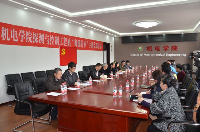 为贯彻落实习近平总书记在十九大报告提出的“加强师德师风建设,培养高素质教师队伍”重要指示,增强教师的时代责任感和使命感,3月23日下午,机电学院探测与控制工程系教工党支部在3号教学楼146会议室举行“师德传承”主题党日活动。学校党委组织部副部长周波,孙硕,机电学院党委书记王伟,党支部书记陈慧敏等全体党员参加了活动。