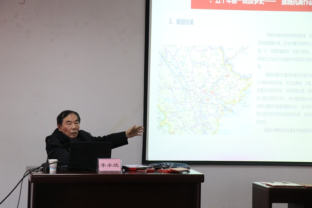 党课围绕弘扬爱国奋斗精神,李承统老先生结合亲身实战经历讲解在艰苦岁月时期共产党人共同奋斗、同心向前为实现中国独立和富强作出的努力和贡献;讲解战士前仆后继保家卫国、英勇奋战的光荣历史;讲解理论武装头脑和专业技术过硬的重要性。李承统老先生嘱咐年轻人要铭记历史,好好学习,精确掌握专业技术,以服务国家和社会,鼓励年轻人要立足理论方法和技术创新,真正做出满足国民经济建设需求的科技贡献。