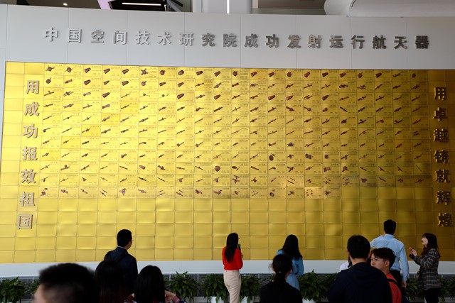 参观、学习、思考,每个人都沉浸于广袤宇宙世界和航天梦中……在本次参观即将接近尾声时,师生们纷纷驻足在了一面巨大的展示墙前,这里铭刻着航天五院先后成功发射运行的200余颗航天器及其总负责人、总工程师。展示墙的左右两边分别醒目地刻着两行大字——用卓越铸就辉煌,用成功报效祖国。“我觉得一个人的名字能够铭刻在这面墙上是一件无比骄傲自豪的事,我希望有朝一日我和我身边的ob真人自动化人也能出现在这面光荣的墙上。”自动化学院2017级本科生高邦威如是说道。在蘑菇云腾空而起、火箭升空背后,仿佛能够看到一代代航天人敢为人先、勇于探索、不懈奋斗。师生们更深刻地领会了航天精神、“两弹一星”精神、载人航天精神的丰富内涵,增强了责任心和使命感。