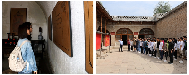 在临县南圪垛村的中共西北局旧址,师生们了解了延安革命时期边区政府和党的地方组织开展艰苦卓绝斗争的这段历史。在方山县桥沟村第一书记刘伟光的带领下,全体学员重温入党誓词,在庄重的仪式中,凝聚师生不忘初心的信念与力量。