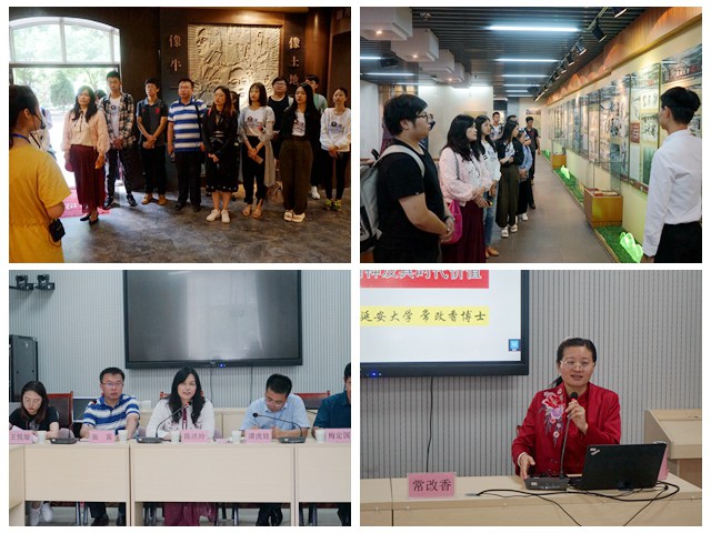 7月10日,实践团前往延安大学进行学习交流。当天上午,实践团首先前往延安大学校史陈列馆和路遥文学馆进行参观,通过讲解员的讲解,让大家对延安大学深厚的文化底蕴有了更深刻的认识。随后,由延安大学政法学院常改香副教授就“延安精神及其时代价值”主题向实践团成员进行分享交流。当天下午,在延安大学泽东干部学院会议室召开了“ob真人竞猜——延安大学学生座谈会”,延安大学马克思主义学院执行院长谭虎娃教授、副院长梅定国副教授、研究生秘书刘建华老师以及延安大学马克思主义学院2018级研究生代表参与本次座谈会。座谈会上,延安大学谭虎娃教授和学院陈洪玲教授就学院建设和发展规划等进行了深入交流。陈洪玲教授就研究生毕业论文选题以及论文写作技巧等相关问题进行深入讲解,张雷介绍了学院ob真人的有关情况并回答了同学们的相关提问,两院研究生交流了有关学习、课程讲座、学生活动等相关问题。本次座谈交流对双方进一步相互学习、携手发展将发挥重要的作用。