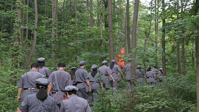 在体验式学习环节,师生们穿上红军服,重走革命先烈战斗过的“志仁小道”。虽然山间小道崎岖难行,但教师们被先烈的精神所鼓舞,奋勇前行,无一掉队。《团结就是力量》《八月桂花遍地开》《保卫黄河》《打靶归来》……行进途中的一曲曲红色歌曲响彻山间,把大家带回了那个战火纷飞的年代,感受着革命老前辈不畏艰险的坚定斗争信念。