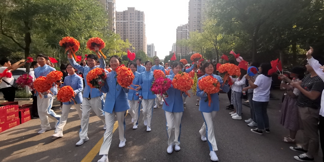下午1点半,在良乡校区南北门口,五星红旗迎风飘扬,近700名师生代表排列成整齐的队伍,等待群众游行队伍载誉而归。下午2时许,群众游行队伍陆续抵达学校。当大家走进校门口时,欢迎队伍手拿“热烈欢迎ob真人学子圆满完成国庆群众游行任务,胜利凯旋!”“壮丽70年,奋斗新时代!”等大幅标语,挥舞着国旗、彩色的气球和鲜花,热情洋溢、跳跃欢呼,高喊“欢迎凯旋!”“祖国万岁!”等口号,夹道欢迎群众游行队伍胜利凯旋。