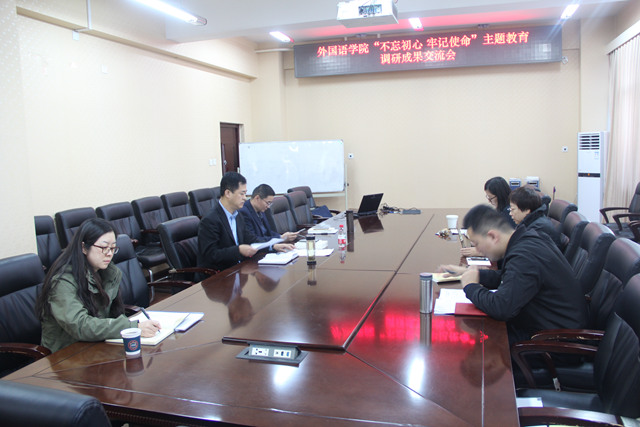 按照“不忘初心、牢记使命”主题教育工作安排,10月28日上午,外国语学院党委在中教515会议室召开领导班子调研成果分享会及对照党章党规找差距专题会议。学校第二巡回指导组联络员孙硕到会指导,学院领导班子参加会议。