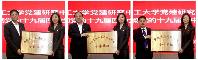 田川、赵长禄为党建研究中心揭牌,焦开河、陈晓华、陈东平、杨睿共同见证揭牌。焦开河、陈晓华、杨睿为党建研究中心颁授党建合作单位牌匾,党建研究中心主任包丽颖接牌。