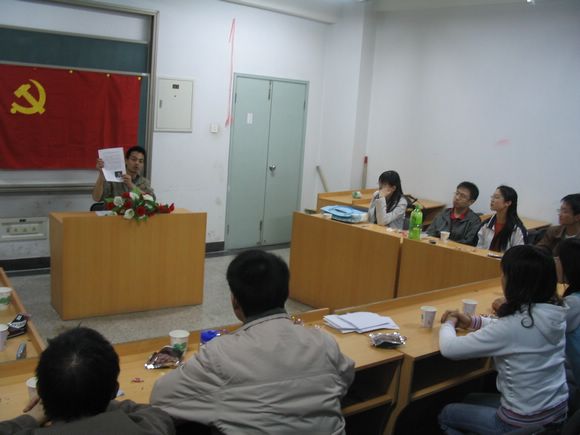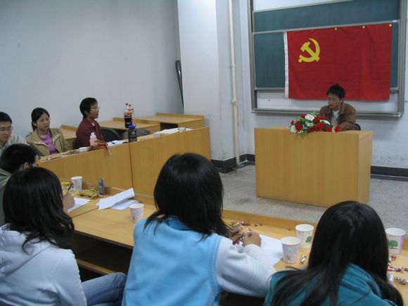 2006年4月23日,为了认真学习领会“八荣八耻”社会主义荣辱观,理学院本科生2002级物理党支部组织支部全体党员召开了主题茶话会。会议由党支部书记王科同志主持,支部17名党员分为8组,每组以一个话题展开演讲,其余同志共同参与讨论。