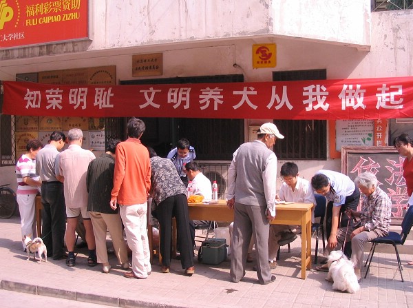 为规范养犬行为,保证养犬人和他人的安全健康, 5月20日我校居民管理居委会在社区小白楼举行了“文明养犬从我做起”宣传教育活动,倡导居民依法、文明、科学养犬。活动中居管会为养犬人免费提供了宣传材料。万寿寺派出所民警为养犬人办理了养犬年检、养犬登记手续,康宝动物医院为养犬人提供了免费养犬防疫针并在现场给犬注射。学校综合治理办公室主任娄荣生现场指导宣传工作,居管会主任韩棋亲自组织安排现场活动的具体事项。现场为社区36位居民提供了服务。通过这次宣传教育活动,使广大居民增长了科学文明养犬的知识,有利于和谐文明校园环境的形成。