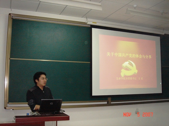 11月5日晚,生命学院分团委书记王征老师赴良乡,给07级新生上了一堂精彩的党课。