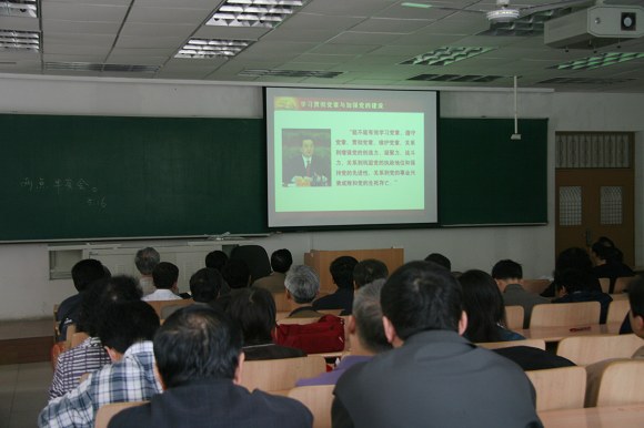 会上,学院教职工党员观看了中央组织部副部长欧阳淞主讲的题为《贯彻党的十七大精神,学习党章辅导报告》的学习光盘。