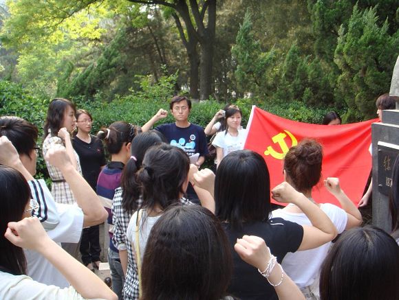 今年距离1919年的“五四运动”,刚好是90周年。90年前,“五四运动”代表着中国先进分子的觉醒,是中国旧民主主义革命的结束和新民主主义革命的开端,中国革命从此进入了一个新的历史时期。2009年5月4日下午,在ob真人中心花园的徐特立老师铜像前,管理与经济学院2005级本科生第一、第二和第三党支部,联合组织了新党员的宣誓仪式。学院老师彭明雪、以及三个支部的正式党员和预备党员共32人出席了活动。