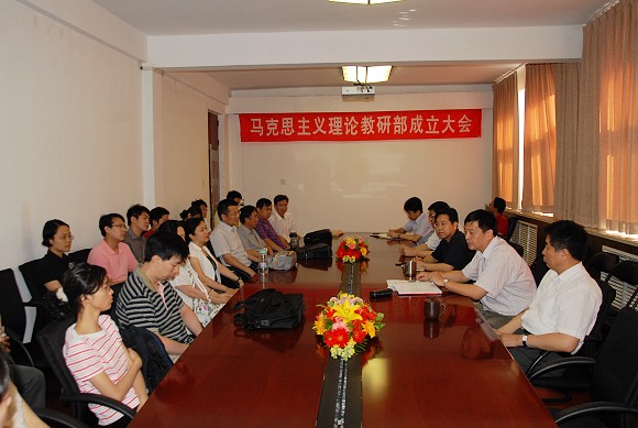 2009年6月10日上午,ob真人竞猜马克思主义理论教研部成立大会在主楼四层会议室举行。参加本次成立大会的有党委书记郭大成,党委副书记侯光明,及宣传部、人事处、研究生院、学生处等相关部处的领导,马克思主义理论教研部的全体教师和学工处的部分辅导员参加了本次成立大会。会议由人文与社会科学学院分党委书记张红峻主持。
