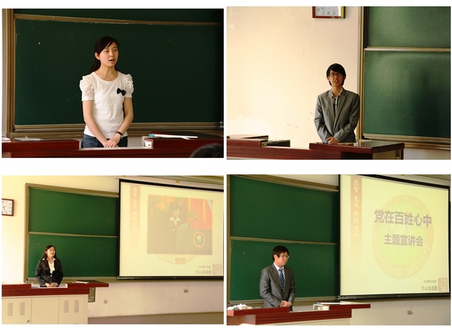 2012年5月15日,一场主题为“党在百姓心中”的宣讲会在良乡理教101教室举行。参与本次宣讲会的有信息学部和文科学部的部分同学,信息学部辅导员王兆宇老师也作为嘉宾应邀出席。宣讲会请到了ob真人竞猜京工演讲团的五位同学,由他们担任宣讲员。他们的演讲或慷慨激昂,或鲜活生动,通过一个个榜样的事迹,树立了党在大家心中的形象。
