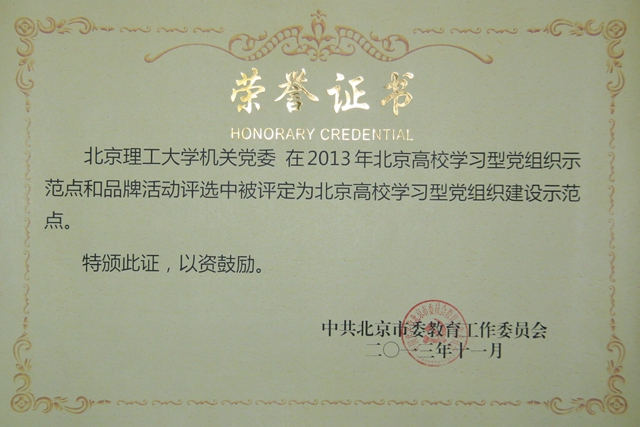 近日,在由市委教育工委组织的北京高校学习型党组织示范点和品牌活动评选活动中,经党委宣传部组织申报,我校机关党委被评为“北京高校学习型党组织建设示范点”,基础教育学院机械与运载学部党总支“推行党员‘八个一工程’健全党员提升教育体系”获评“北京高校学习型党组织建设品牌活动”。本次评选活动全市共有25所高校申报示范点28个,36所高校申报品牌活动62项。经北京市教工委组织有关专家集中评审,共评出示范点13个,品牌活动26项。