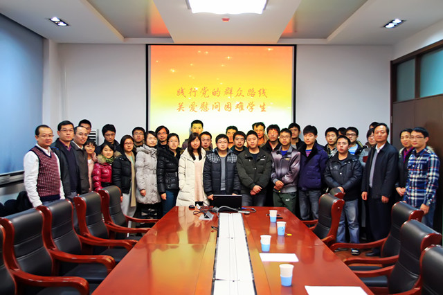 为深入贯彻落实党的十八大、十八届三中全会精神,全面践行党的群众路线教育实践活动,进一步开展好帮扶工作,确保家庭经济困难的学生过上一个喜庆、祥和的春节,2014年1月10日,自动化学院开展了“践行党的群众路线,关爱慰问困难学生”活动,学院领导与学生零距离交流,并对30名(20名本科生、10名研究生)品学兼优的家庭经济困难学生发放补助。