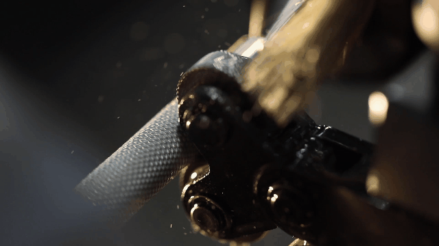 车刀高速旋转,逐渐逼近,银色金属丝幻化成螺旋飘带,自由飞舞,一个层次分明、凹凸有致的精致手柄呈现。