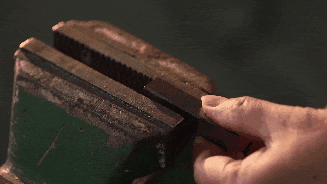 将铣好的六面体坯料夹紧,沿着同一个方向,坚守同一个力度,锉刀千百次前进,只为一个合规的平面。