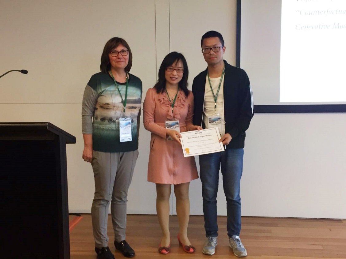 Prof Tanja Mitrovic为朱福进博士(右)颁奖 日前,“第31届澳大拉西亚人工智能联合会议(Australas...