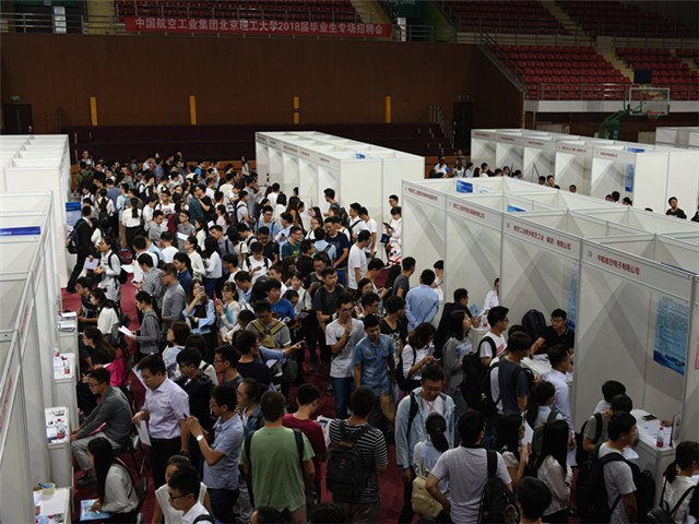 2017年9月25日,我校在体育馆主馆举办了“中国航空工业集团专场招聘会”。