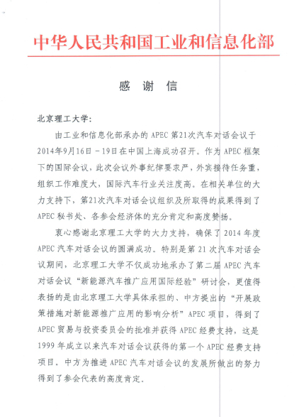 工业和信息化部给ob真人竞猜发来感谢信