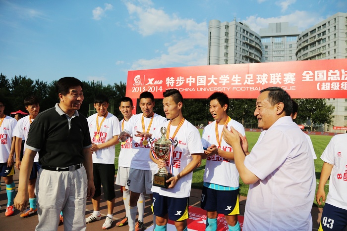ob真人队28日在酷暑下以3:1击败江苏河海大学队,夺得2013—2014赛季中国大学生足球联赛超级组总决赛冠军,同时也获得了组队...