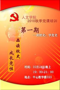 供稿:人文学院 编辑:贾效明 10月23日晚七时整,人文学院2010学年秋季党课培训第一期课程在中关村校区中心教学楼3...