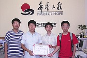今天上午,刚刚获得第三届趋势科技百万程序竞赛冠军的Collapsar队部分队员来到位于东城区的中国青少年发展基金会,向希望工程捐款...