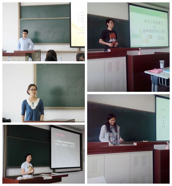 2010级日语专业朱康荣同学在今年的研究生入学考试中取得了极高的分数,她就考研专业选择,日常复习备考时间安排,考场心理调适,应试技巧,书籍选择等方面,结合自身经验,介绍了考研路上要有自信、能吃苦、懂方法、善请教。2010级英语专业张乙欣同学现已收到工商银行重庆分行offer,并且在银行考试中取得均分86的好成绩。她针对着有求职意向的同学,尤其是对银行工作有兴趣的同学,分享了自己的求职经验。在面试准备、企业选择等方面,为同学们提供了宝贵的经验。2010级德语专业黄翔同学则是通过自己的实际经历,为有意留学的同学答疑解惑。他为同学们推荐了很多极具价值的留学信息网站,并把自己在IPS审核以及投送简历的亲身经历讲述给同学们,为学弟学妹们提供了很大的帮助。