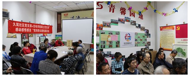2014年3月以来,光电学院13级硕士学生党支部与石景山区久筑社区党支部紧密联系,开展红色“1+1”共建活动。久筑社区是位于石景山鲁谷开发区西部的老型社区,居民以60岁以上老人为主,党支部成员大都是从上世纪四五十年代走来的老党员。