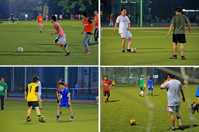 5月19日晚间,夏日的热气正随着夜幕的降临渐渐褪去。翻修后的西操场焕然一新,灯火通明。傍晚18时许,各队的首发队员早已来到球场做热身准备,球队观众也不断聚集,期待观战。19时整,两场比赛同时准时开始。各队球员均迅速投入比赛,相互拼抢激烈,展现出良好的竞技状态,比赛节奏也在不断加快。紧张的比赛,也使得观众的气氛高涨,呐喊声与喝彩声此起彼伏,接连不断。最终,06111001、06111002班联队与06111003、06111004班联队携手晋级决赛。