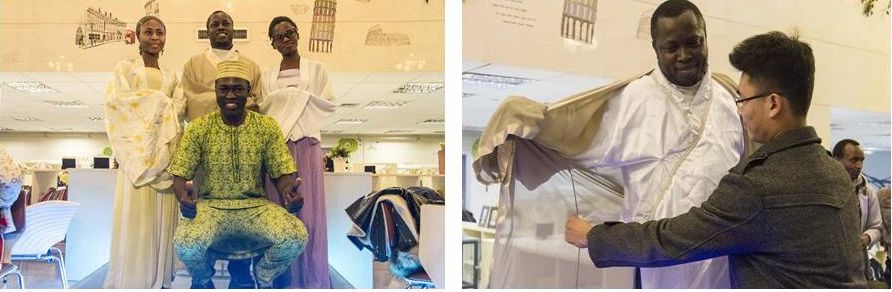 Clothes are an important part of the daily life in ancient China, and can you imagine what it is like to wear the costume in Han Dynasty, Hanfu? Well, it’s really cool. Hanfu has some special features like its long and wide sleeve, and that reflects some customs of the Han people. For example, when drinking on formal occasions, they usually hide their faces behind the wide sleeves. The international students on spot tried on the Hanfu and took some photos to memorize this special moment.