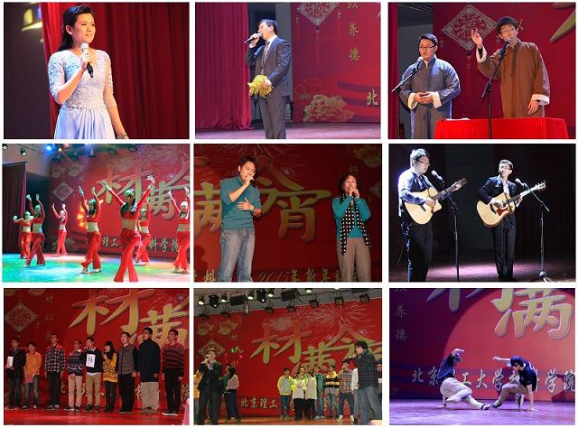 陈鹏万书记,刘颖院长、张舰月副书记、凌剑老师一展歌喉,深情演绎了多首经典歌曲;李树奎副院长、金海波副院长、庞思平副院长的配乐诗朗诵慷慨激昂、韵味十足,让现场观众领略了文学作品之美;张博文、樊子天同学的相声《歪批四大名著》,插科打诨,诙谐幽默,让师生捧腹不已;女学生干部表演了舞蹈《摇摆的青春》,妙曼的舞姿秀出了材女们的风采;王丽英、刘金旭、周续源等老师和学生歌曲串烧首首精彩,或引亢高歌,或吉他弹唱,余音绕梁;马壮课题组的小品《我来看看实验室》,生动的表现了材料师生的实验室趣事,引起笑声不断;2012级电子封装班合唱了班歌《巅峰之路》,一句“请老师放心”道出了学子的心声;李伟赫、赵宇恒等的街舞《要爱一起》动感十足,洋溢着青春与活力。