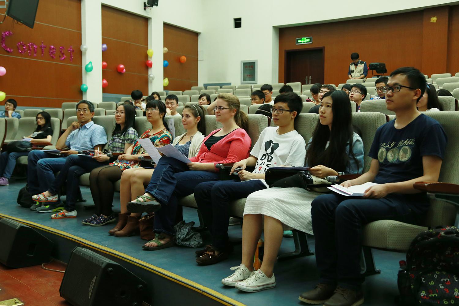 大赛分为初赛与决赛两个阶段。初赛环节的形式为线上答题,在一番激烈的角逐后,共有十名同学脱颖而出,来到了决赛现场。决赛内容以新闻翻译为主,共分为共答题、抢答题和必答题三个环节。现场请来了校英文网站编辑兼外语新闻社指导老师赵琳、外国语学院弓军老师、来自加拿大的外教Miss.Cole以及来自美国的Miss.Thomas作为大赛评委。