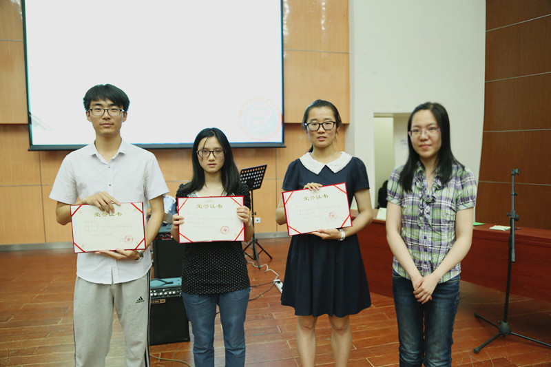 最终,陈玉竹、张郑和陆天和同学获得了三等奖,黎琼、孙航同学获得二等奖,何鑫同学荣获本次大赛一等奖,评委们为他们颁发了证书。