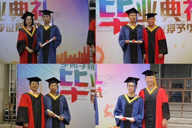 在接下来的学位授予仪式中,于倩教授、胡更开教授、唐胜景教授、王宁飞教授为全体毕业研究生授予学位,71名毕业研究生依次上台,从各位敬爱的师长手中接过学位证书并合影留念,毕业典礼在掌声和欢声笑语中落下帷幕。