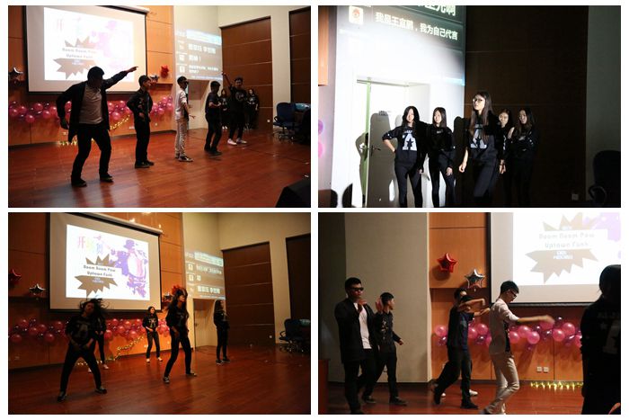 晚会在开场舞《boom boom pow+uptown funk》中拉开了帷幕,表演者都是来自学院14级学生会成员,他们既是晚会的工作人员又是晚会的表演者,希望可以用音乐与舞蹈来表达自己对新生的欢迎之情。