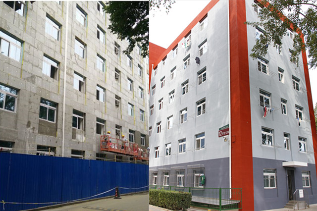 12号楼以崭新的面貌呈现在大家面前,除了对外墙面和楼顶加装外墙保温层,还将近300扇老旧塑钢窗更换成了节能断桥铝窗;粉刷一新的3、5、6、新1、12号楼共900多个房间已迎接良乡校区搬迁学生的顺利入住。