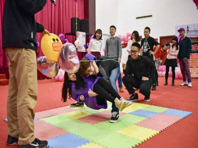 晚上7:00,参加活动的50对男女嘉宾按照领取的座位号入座之后,活动正式开始。根据前期安排,本次活动主要设置了暖场游戏、8分钟约会、文艺表演等环节。二选一、你画我猜、爱的抱抱等暖场游戏的设置可以让嘉宾相互熟悉,避免陌生和隔阂,同时也带动了活动的气氛,让男生女生更好地表现自己。