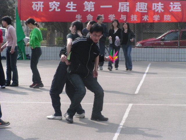 “生命在于运动,注重团队精神,并把团队精神带到科研中”是本次运动会的目的。参加此次运动会的共有12个研究生团队。运动会共设置了8个趣味竞赛项目,转呼啦圈走路,骑慢车,投篮大赛,盲人拾物,龙凤戏珠,二人背运球,其中还有两个团体项目 :绑腿接力穿障碍和团体跳长绳。