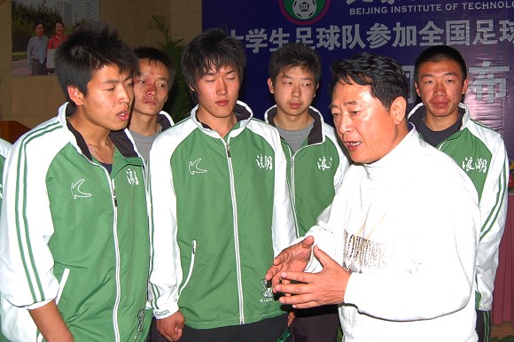 北京市大学生体育协会主席、我校党委副书记、副校长杨宾讲话,介绍了我校大学生足球队的诞生、发展、成绩与现状,并希望透过今年参加全国足球职业乙级联赛来磨炼队伍、达到进一步提升水平的目标。