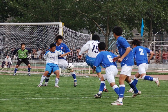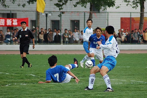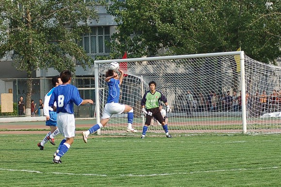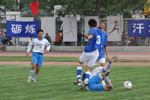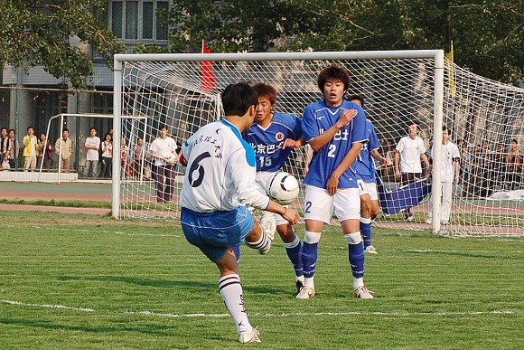 声东击西:对方最左边队员做出高难动作,导致我方守门员注意力严重分散~~