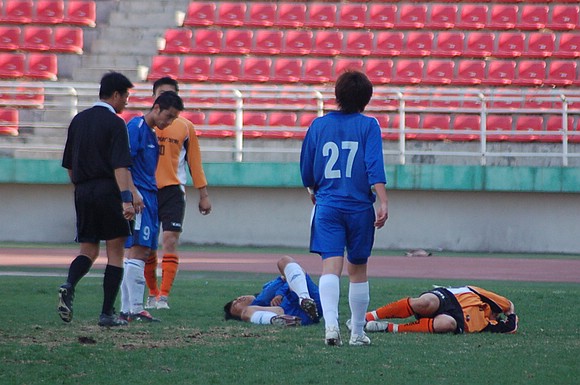 这绝对能称之为一场惨烈的比赛,当裁判吹响全场比赛的哨声时,这支学生军的场上队员已经拼尽了最后的力气倒在了场地上。