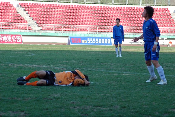 哈药毅腾队上半场以0:2落后,下半场踢法较为粗野。