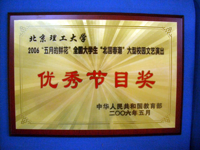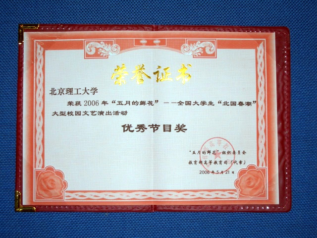 我校大学生艺术团16名同学于5月18日赴吉林省长春市吉林大学参加教育部主办2006年"五月鲜花"——"北国春潮"大型校园文艺演出,经过同学们的辛苦努力,我校节目获得了优秀节目奖。