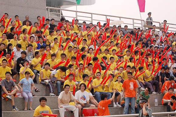 机械与车辆学院的球迷方阵锣鼓喧天。