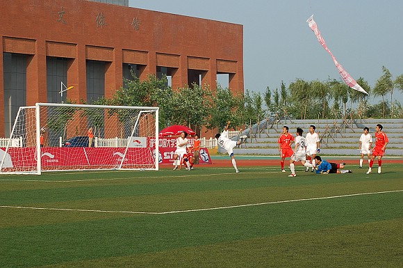 第29分钟时,太原理工大学队利用我方后卫的一个疏忽,偷袭成功,场上比分变为3:1。